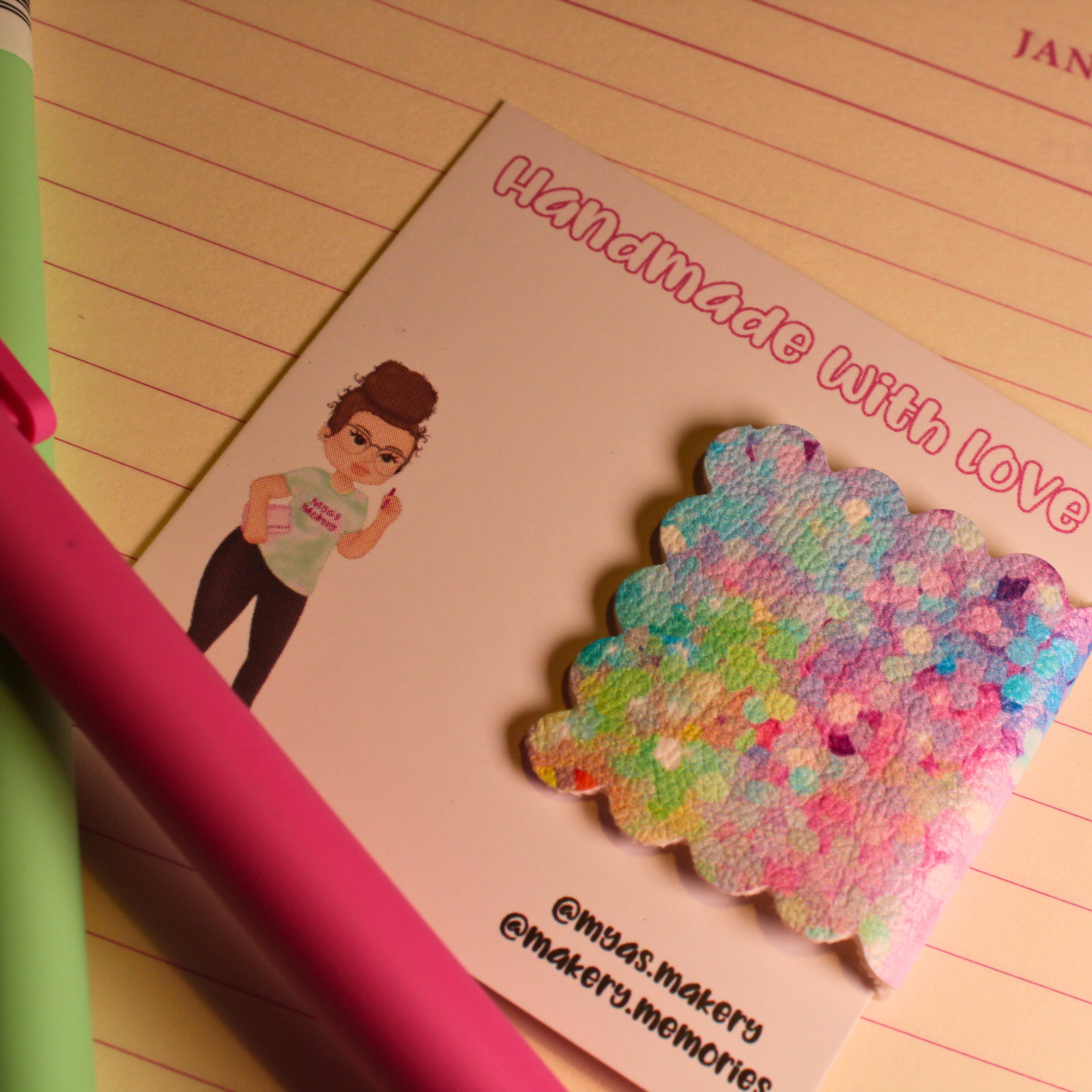 No two readers are the same—and neither are these page markers. Each printed glitter pattern magnetic bookmark is cut and crafted by hand, meaning every single one has its own little quirks and sparkle. That’s right: you’re not getting mass-produced perfection, you’re getting a one-of-a-kind piece made with care (and a dash of glittery chaos).