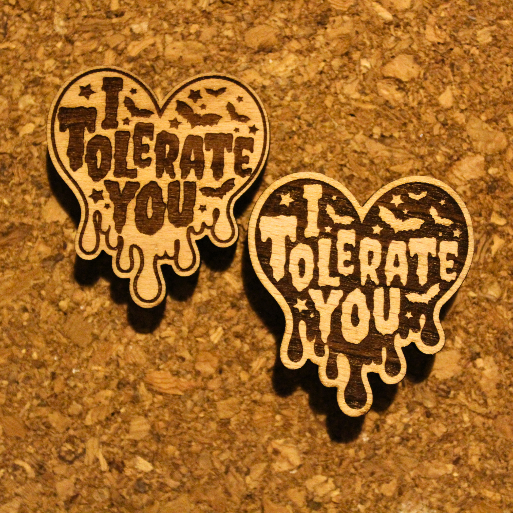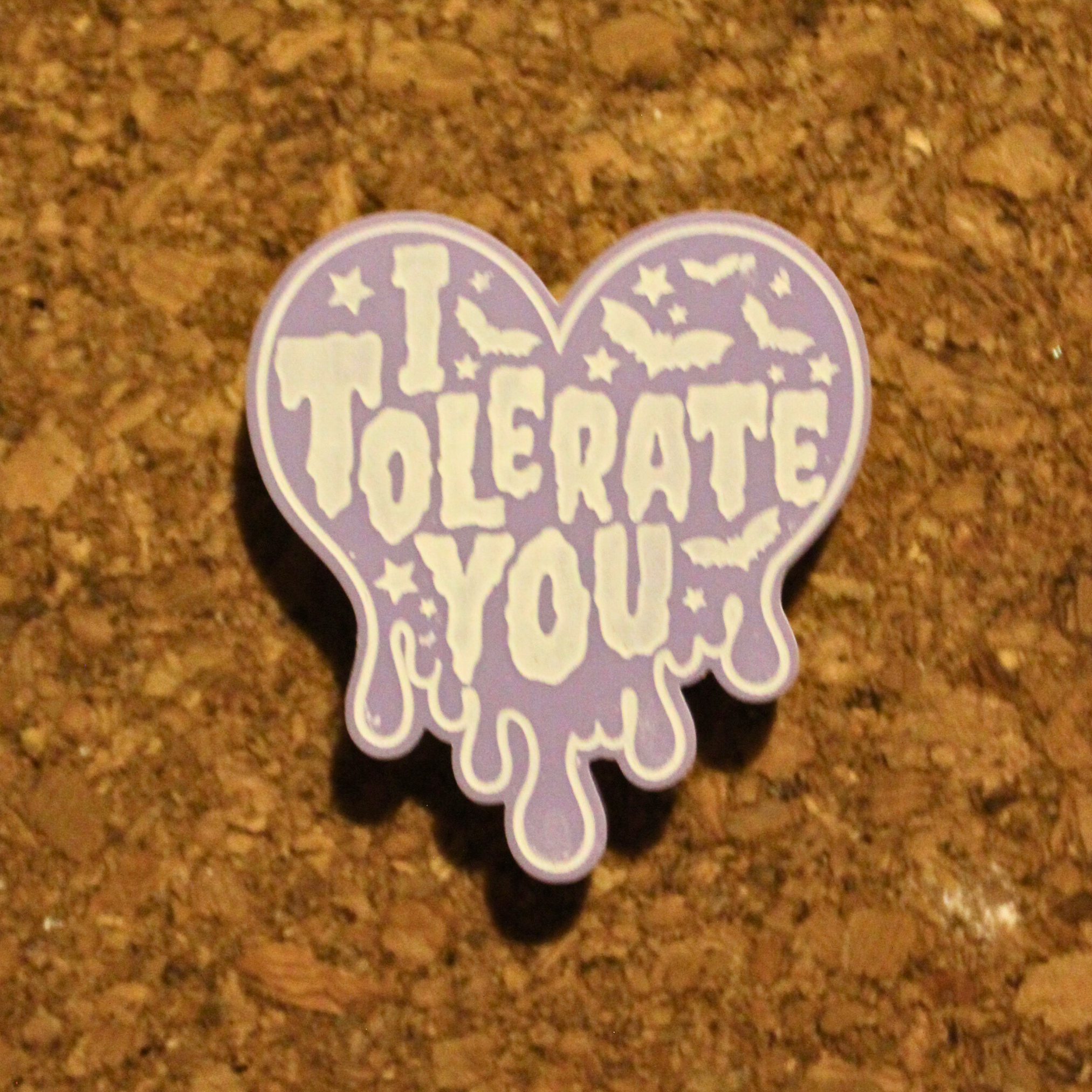 In a world full of people, you’ve chosen to stand near this one. Don’t let it go to their head. Our “I Tolerate You” Pin Badge is the gold standard for showing affection without actually having to be “nice.”