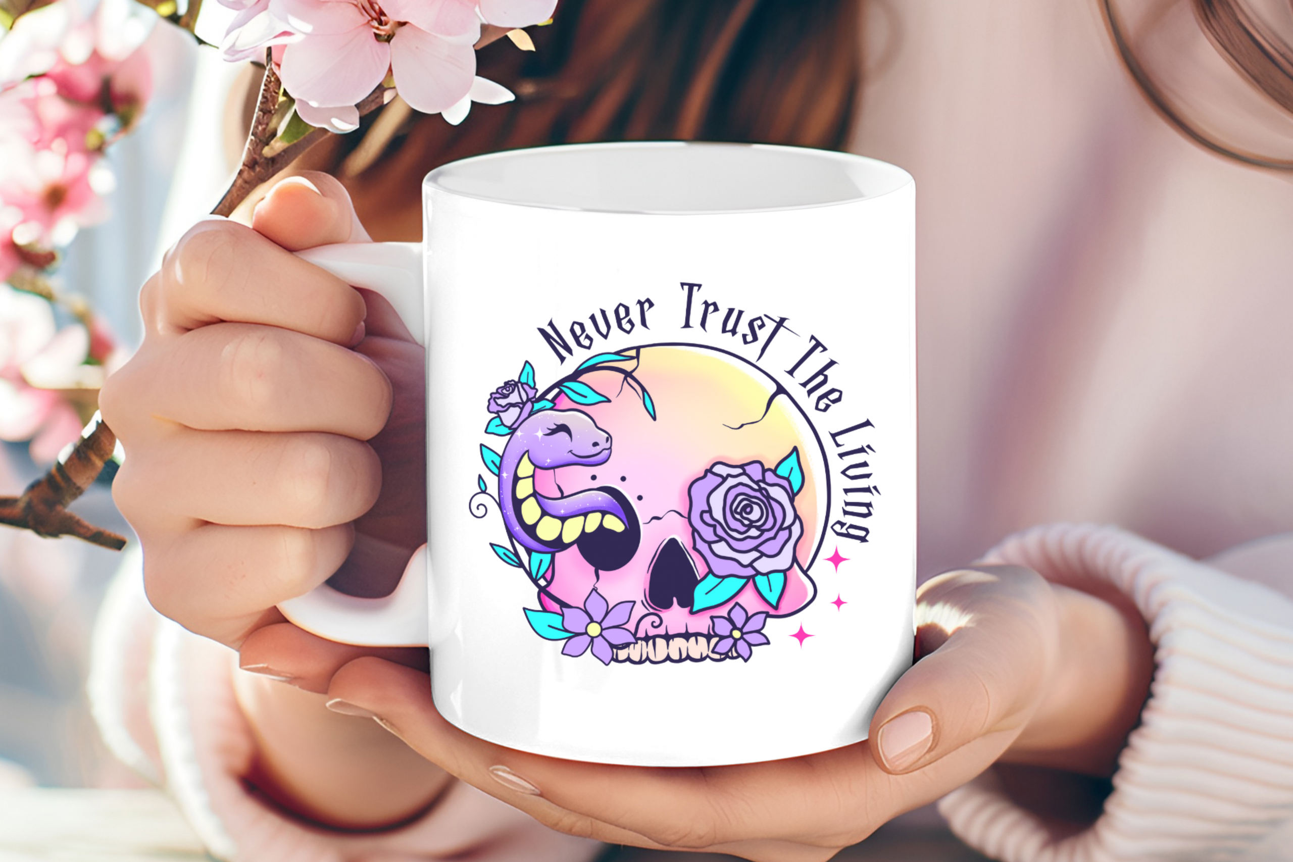 Why settle for a plain morning when you can have one full of mystical charm? Our “Never Trust The Living” mug is designed for those who find beauty in the macabre and magic in the unexpected.