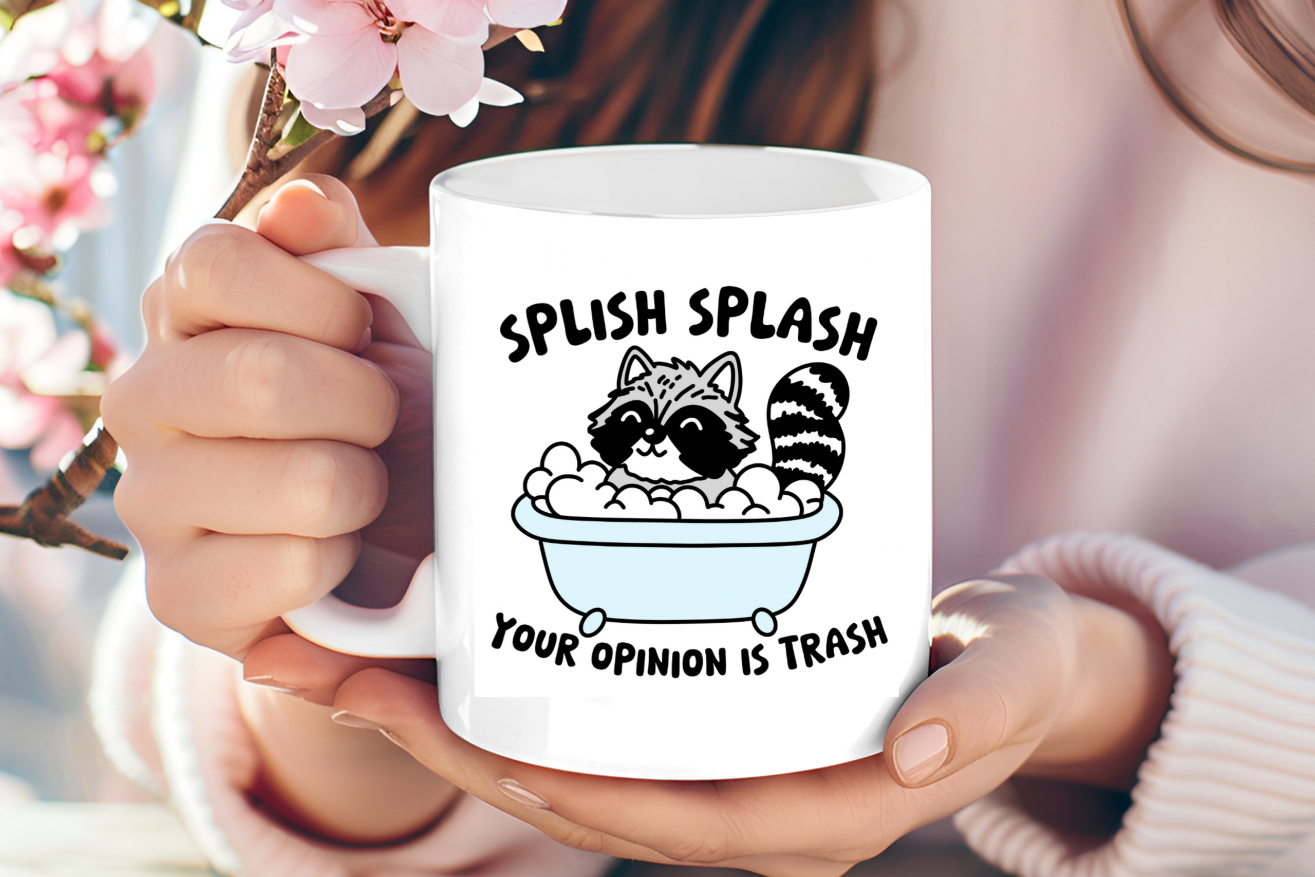 Title: Unapologetic Vibes: 11oz “Splish Splash Your Opinion Is Trash” Raccoon Mug